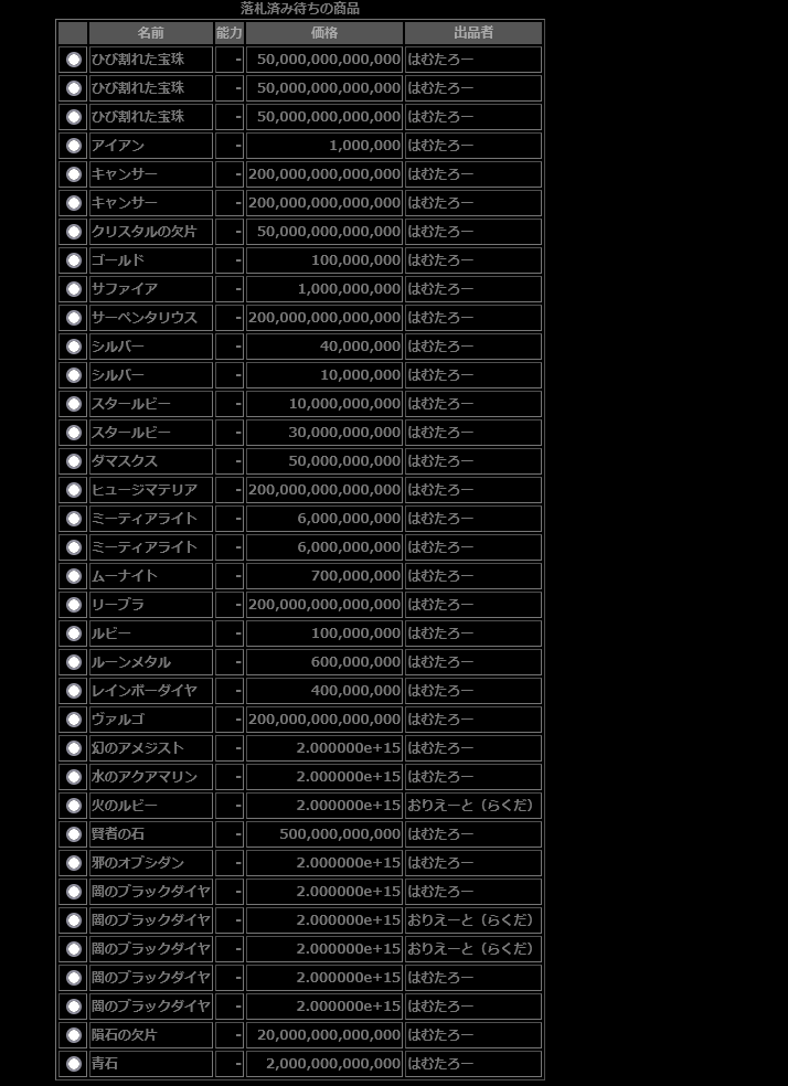 強制落札額:100000000000000000000 (1e+20)